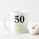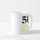 50 & Toujours Fabuleux tasse à café. Faites du 50 ans une occasion fabuleuse avec ce design amusant et flirtant. 50 et toujours fabuleux en texte vert clair et noir.