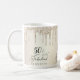 Élégante tasse personnalisée de 50e anniversaire avec "50 & Fabulous" écrit en écriture stylisée contre un arrière - plan de champagne en faux feuille d'or, avec fausse parties scintillant or coulant du haut. Vous pouvez personnaliser avec son nom.
