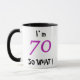 70 Alors Quelle Amusante Mug Inspirationnelle 70e Anniversaire. Une excellente idée cadeau pour une personne célébrant le 70e anniversaire. Il est livré avec une citation drôle et motivationnelle I`m 70 alors quoi et est parfait pour une personne avec un sens de l'humour.