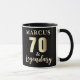 70 & Legendary Gold Mug 70e Anniversaire. Célébrez le 70e anniversaire avec cette tasse élégante et personnalisable. Avec son texte gras et doré '70 & Legendary', ce design est prêt à être personnalisé avec un nom. C'est le cadeau idéal pour honorer un père, un grand-père ou un ami cher atteignant cette étape incroyable. Cette tasse est parfaite pour les fêtes d'anniversaire.