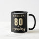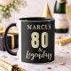 Mug 80 & Légendaire Or 80e Anniversaire. Célébrez le 80e anniversaire avec ce mug élégant et personnalisable. Avec son texte gras et doré '80 & Légendaire', ce design est prêt à être personnalisé avec un nom. C'est le cadeau idéal pour honorer un père, un grand-père ou un ami cher qui atteint cette étape incroyable. Ce mug est parfait pour les fêtes d'anniversaire.