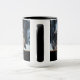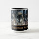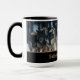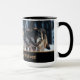 Cette tasse à café en céramique est montrée avec une photo de loups sauvages dans le parc national Yellowstone. Tan accents avec intérieur noir et poignée. Customisez cet objet ou achetez tel quel. Image stock