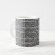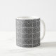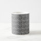 Cette tasse au design Art Déco est faite d'un angle droit avec un labyrinthe à l'intérieur en noir sur un champ de gris.