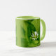 Mug à fleurs de poulet - Ce charmant mug présente une photographie délicate de la Fleur de poulet (Stellaria media), une herbe annuelle tendre et comestible originaire d'Europe, mais naturalisée dans de nombreuses parties de l'Amérique du Nord. Les fleurs minuscules en forme d'étoile sont une oeuvre d'art magnifique et complexe, qui fleurit au début du printemps dans le jardin du photographe. L'image met en valeur la délicate beauté de cette herbe, qui est utilisée depuis des siècles en phytothérapie et en soins de la peau