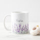Commencez votre journée avec une inspiration paisible en utilisant ce mug à café lavande personnalisé. Conçu avec une bordure lavande aquarelle douce et un accent de papillons gracieux, ce mug élégant ajoute une touche florale apaisante à votre café ou thé du matin. Personnalisez-le avec un nom pour un beau cadeau significatif.