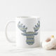 Des couches de motifs inspirées des motifs trouvés dans les chandails nordiques créent un merveilleux sentiment hivernal avec des flocons de neige, des montagnes et des arbres à feuillage persistant. Une tête d'orignal masque le motif répétitif pour créer une image mignonne et amusante pour les mois froids. Cette tasse est disponible dans une variété de couleurs, de tailles et de styles, y compris les tasses et les steins classiques.