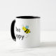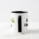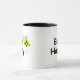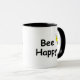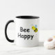 La tasse de café heureuse d'abeille a une abeille jaune mignonne bourdonner autour.