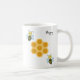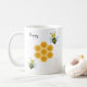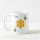 Mug Abeilles heureuses et nid d'abeille. La calligraphie heureuse peut être personnalisée.
