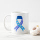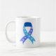 Notre ruban Mahjong pour Mémoire en bleu pour sensibiliser aux lésions cérébrales acquises. Carreaux de Mahjong avec des caractères chinois posés sur un ruban bleu. tasse de Mahjong, tasse de mahj, tasse de mah jongg, tasse de mah jongg