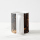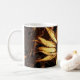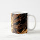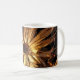 Cette tasse comporte une interprétation abstraite d'une tête sèche de graine d'ageratum. Les belles fleurs pourpres bleues sont allées, les graines ont dispersé, et cette coquille est tout ce qui reste. Le motif impressionniste est un bel affichage contemporain avec des couleurs d'automne de brun, de jaune, or, orange et noir.