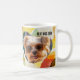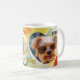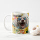 Whimsical photo mug featuring two photos of your dog or other favorites on a custom collage of abstract art. A bright and colorful mug for a dog lover.