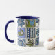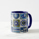 A vibrant set of ceramic tiles featuring abstract representations of birds and flowers, with bold blue, green, and white color patterns. The designs are characterized by geometric shapes and playful lines, creating a modern and artistic visual appeal.