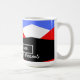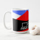 Design moderne minimaliste avec coloré d'art abstrait et esthétique en bleu bleu rouge noir et blanc décoré sur un triangle géométrique motif pour un look élégant et élégant sur une tasse à café personnalisable qui est facile à éditer afin que vous puissiez écrire votre nom et vos citations inspirantes préférées et des paroles de motivation pour vous aider Commencez bien votre journée avec un bon café et des mots de motivation pour une bonne journée productive