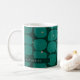 Formes Abstraites, tasse de vacances personnalisée. Couleurs festives de fantaisie vert et faux or avec ligne de texte modèle pour nom ou initiales.