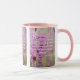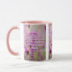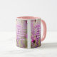 Cette tasse à deux tons présente un motif qui a une police d'impression condensée Din Next avec des lettres blanches, couleur violet, affichant le verset de la Bible Actes 17:28 KJV sur cette image montrant une fleur violette avec plusieurs couleurs de violet dans l'arrière - plan de ce thème basé sur la foi. Ce verset fait référence au 17e chapitre du Livre des Actes, qui montre le 28e verset de ce thème de citation biblique de la Bible du Roi Jacques. La jante et la poignée sont émaillées dans des couleurs assorties disponibles en 11 onces ou 15 onces de micro-ondes de taille et lave-vaisselle en céramique de construction sécuritaire.