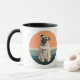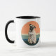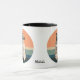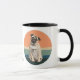 Un portrait d'un adorable chien de Carlin est la caractéristique de cette tasse. L'image est placée sur un arrière - plan rétro, corail légèrement en détresse et couché de soleil bleu, et imprimée deux fois sur la tasse. Votre nom est en script noir entre les images.