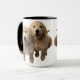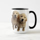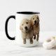Cette image montre une tasse en céramique blanche avec une poignée et une jante noires, avec une photo pleine de charme de deux chiots récupérateurs d'or moelleux au milieu du trottoir — l'un regardant doucement vers l'appareil photo, l'autre souriant joyeusement. L'imprimé de haute qualité capte leur fourrure douce et leur énergie ludique, faisant de cette tasse un cadeau de charme pour les amoureux de les chiens, les nouveaux propriétaires d'animaux ou toute personne qui adore les chiots mignons. Parfait pour le café, le thé ou comme gardien décoratif.