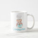 Personnalisez cette adorable tasse avec votre propre nom. Ce joli design présente un ours d'aquarelle avec un casquette de chef et elle remue un bol de pâte à biscuits. Le texte ci-dessous dit "Mama Bear." L'autre côté de la tasse a un endroit où vous pouvez mettre votre propre nom. Un cadeau sucré pour une mère.