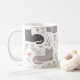 This charming mug features a delightful, hand-drawn design of sweet cats in soft pink, grey,