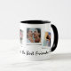 Tasse adorable avec 4 photos de votre choix et le texte 'Les sœurs sont les meilleures amies' avec deux petits cœurs noirs.