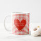 A red felt heart "appliqued" with a white blanket-stitch edge on red and white gingham. And a daisy! Timeless, nostalgic, a simply lovely way to tell her you love her. Use the easy template tool to personalise the text and create a custom and thoughtful declaration of love to your girl / girlfriend / sweetheart / fiancée / wife / lady. A novel and truly unique wedding anniversary / Valentine's day / birthday / Christmas keepsake gift idea.