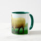 Un tableau pittoresque d'un mouton ou d'un agneau dans un champ d'herbe ou un pâturage vert tendre.