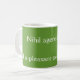 Une tasse verte et bleue avec une phrase latine et la traduction anglaise. "C'est agréable de ne rien faire", par l'avocat romain Cicéron.