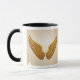 Un design simple à ailes dorées symbolisant la liberté et la transcendance, dressé contre un arrière - plan pointillé, évoquant l'élévation et la poursuite d'un potentiel illimité. "Image originale générée par Meta AI. L'IA a généré des oeuvres d'art. Licence CC BY-SA 4.0."