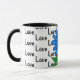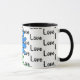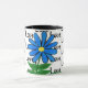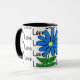 Jolie main - marguerite bleue peinte avec jaune centre floral. L'amour est écrit en écriture noire sur tout le motif. Oeuvre originale © TamiraZDesigns.