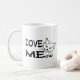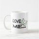 Aimez-moi mon texte et un dessin d'un chat drôle avec les yeux verts. Mug de café amusant pour n'importe qui. N'oubliez pas de choisir un style à partir d'un menu sur une page produit