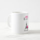 Une tasse personnalisée avec une illustration de la tour eiffel. Une impression de rouge à lèvres rose vif à côté du célèbre repère qui dit xoxo ! et une typographie fantaisie qui dit "amour amour" Paris.