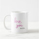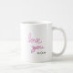 Love you rose manuscrit personnalisé Coffee Mug : "Love you" ce design est créé à partir de l'écriture manuscrite numérique. Le dégradé rose est un symbole d'expression de sentiments d'amour. Cette tasse est parfaite comme un cadeau à des êtres chers comme une forme d'expression d'affection, comme les anniversaires, anniversaires. Vous pouvez également modifier le nom.