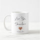 Cette tasse simple et élégante dit "Aimez-vous grand-mère" dans un script noir branché et manuscrit avec un faux coeur d'or rose et une tache pour le nom de son petit-enfant.