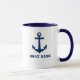 Ancre Ajouter Votre Nom de Bateau Tasse à Café - Thé - Bleu et Blanc