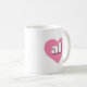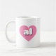Cette tasse présente deux coeurs roses contenant les lettres coques audacieuses, blanches, arrondies et inférieures al, une abréviation ludique pour Alabama, l'état jaune. Marée roulante !