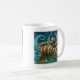 Cette Alice chez le chat du pays des merveilles est parfaite pour le conte de fées et l'Alice dans des fans du pays des merveilles. Je l'appelle le chat de merveille qu'il utilise des rayures oranges et jaunes et un casquette noir supérieur avec un ruban rose. Il s'assied sur le lit des fleurs vertes et rouges. Derrière lui l'arrière - plan est bleu-foncé avec des remous bleu-clair. La peinture entière est très rêveuse et surréaliste. Belles couleurs vibrantes. Inspiré par le caractère de chat de Cheshire dans une de mes histoires préférées de livre d'enfants, Alice au pays des merveilles.