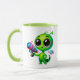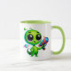 L'image montre un petit extraterrestre vert avec des yeux grands et ronds, qui tient un pistolet laser brillant. Il est accompagné d'une petite planète flottant à côté de lui, ajoutant une touche magique à l'image. L'extraterrestre, avec sa forme arrondie et ses antennes, a un look super mignon qui plaira à tous les enfants et les amateurs de science-fiction. L'illustration est réalisée dans un style cartoon avec des couleurs vives et joyeuses, créant une ambiance fun et futuriste. L'arrière-plan de l'image présente des éléments spatiaux qui complètent parfaitement l'univers intergalactique du personnage. Un dessin parfait pour ceux qui aiment les extraterrestres et les aventures dans l'espace.