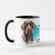 Un portrait aquarelle d'un magnifique Chien Pointeur À poils durs allemand est la caractéristique sur les deux côtés de cette tasse. Chaque image est placée sur un arrière - plan bleu vif. Entre les deux images est le texte qui décrit ce compagnon loyal et ludique, avec "le chien POINTER À POILS DURS" en noir au fond. Tout le texte est facilement customisé à tout ce que vous préférez afin que vous puissiez le personnaliser ou décrire votre propre ami loyal !
