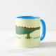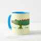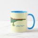 Blanc et bleu clair 11 oz. tasse combo personnalisable avec l'image d'un alligator vert avec écailles de pois bleues surmontées d'écailles de points polka rouges sur jaune doux. Voir la boîte à bonbons correspondante et la plaque en papier. Reportez-vous à la collection Kidz Korner Mug dans la catégorie HOME de la section KIDZ KORNER.