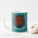 A quirky red octopus illustration on a ceramic mug. Edit the design to replace the text and create a unique, customized item; text changes are reflected on both sides. Featuring my original illustration of a fierce octopus with a mean expression, red curling tentacles spread in all directions and fleshy colored suckers exposed. A shoal of fish stream past in the background. An interesting gift for fans of octopuses, pirate and nautical themes, and cephalopods with attitude.