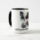 Dessin mignon d'un chien blanc noir (collie frontière, sibérie husky, style malamute d'Alaska) avec une tasse de café - amoureux du café, amoureux des chiens, - grande idée cadeau