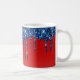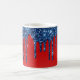 A bold and eye-catching background featuring a sparkling blue glitter drip cascading over a rich red gradient background. The shimmering texture adds a festive, celebratory feel, while the classic red, white, and blue color palette evokes Americana pride. Glitter drips are simulated in the artwork.