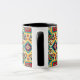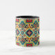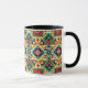 Amérindien, tasse design Aztèque dispose d'un motif géométrique de formes diamant en bleu turquoise, rouille, orange, tan et noir. Il est lumineux et coloré et le parfait pick up mug pour votre café le matin! Il est montré avec un noir à l'intérieur et la poignée, mais il ya d'autres types de tasses disponibles à choisir.