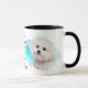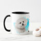 Un portrait d'un adorable chien blanc Bichon Frise est la caractéristique sur les deux côtés de cette tasse. Chaque image est placée sur un arrière - plan bleu vif. Entre les deux images est le texte qui décrit ce compagnon loyal et aimant, avec "le BICHON FRISE" en noir en bas. Tout le texte est facilement customisé à tout ce que vous préférez afin que vous puissiez décrire votre propre ami loyal.