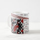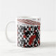 Tasse rouge/noir/blanche. Caractères chinois : honnête, foi, amour.