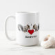 Cette tasse comporte deux écureuils de gris oriental avec un coeur entre eux. Le coeur I accumule le texte.