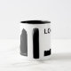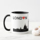 Nous aimons Londres, et pour la montrer, nous apprécions notre café de cette tasse de café élégante de concepteur resplendissante avec les bâtiments silhoetted de l'horizon de Londres et de Londres nommée avec un coeur remplaçant le deuxième "O".