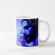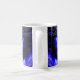 Mug de foi divine bleue. Cette tasse élégante montre un design bleu radieux de Jésus tenant un bébé souriant avec amour. Symbole puissant de l'amour, de la paix et de la foi, il ajoute du sens à votre café du matin ou à votre thé du soir. Parfait comme un don chrétien réfléchi ou un rappel quotidien du confort et de la joie spirituelles. Mug Spirituel / Foi Jésus, bébé souriant OEuvre éclatante hyper-réaliste, tons bleus Adultes, croyants, acheteurs de cadeaux spirituels