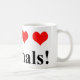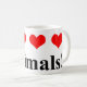 'I love Animals' texte sur un arrière - plan blanc avec trois coeurs rouges.