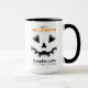 Cette tasse amusante d'Halloween présente une simple illustration de visage de citrouille et une typographie qui dit "Joyeux Halloween", "Latte à la citrouille" et "Chaud et Épicé S'il vous plaît". Cette simple illustration en noir et blanc plaira aux personnes de tous âges. Personnalisez les deux zones de texte pour répondre à vos besoins.